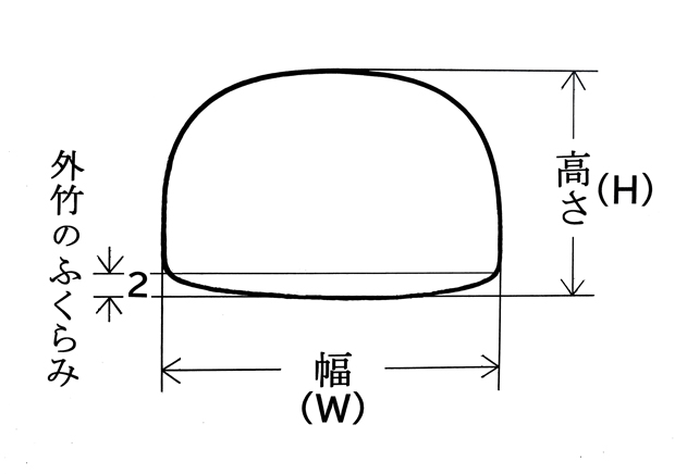 グラスやカーボン等の弓で、弓面が平坦に出来ている場合は、「にぎり合わせ」の実測高さから2mm分(外竹側の膨らみ分)を差し引いた値を基準の外形寸法にしてください。 - 寸法の計測には、廉価な簡易「ノギス」が便利ですのでお勧めします。