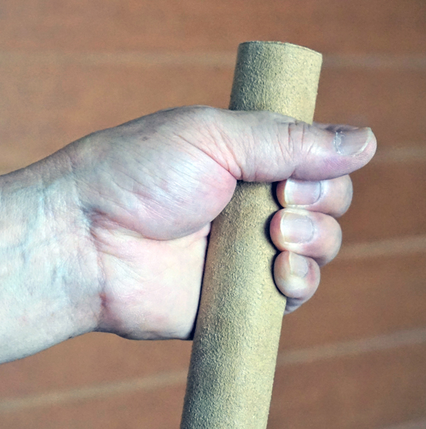 幅が決まると次は最適の高さを探します。自分の手に適した高さは、会の手の内を作った時に中指の爪先と母指球(親指根元のふくらみ)の間に、適切 な間隔ができることが必要です。